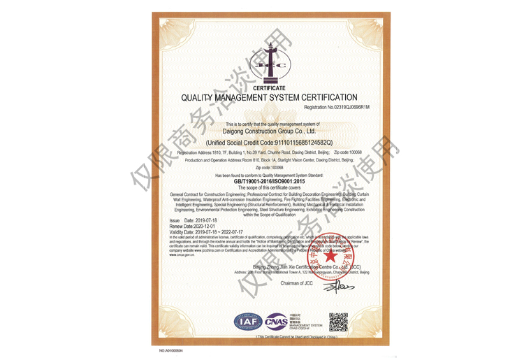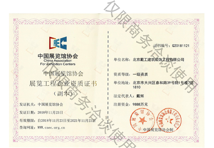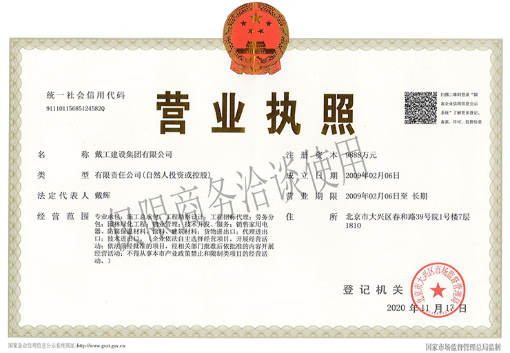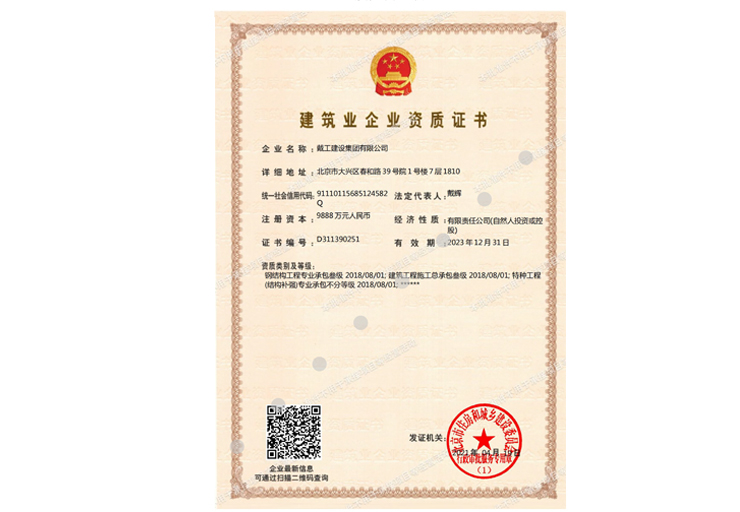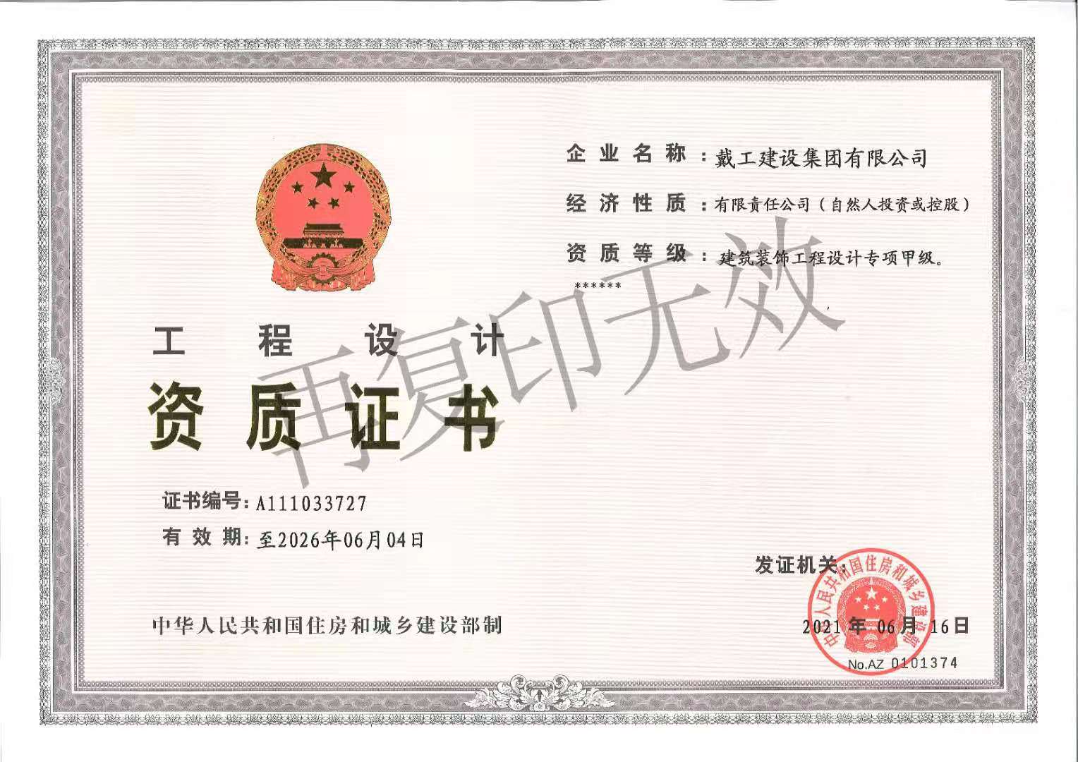 戴工建設集團有限公司,創(chuàng)建于2009年,注冊資本9888萬元人民幣。公司位于北京市大興區。具有建委頒發(fā)的建筑裝飾裝修專業壹級,防水保溫工程專業壹級,建筑幕墻專業貳級,消防設施專業貳級,電子與智能化專業貳級,特種工程(結構補強)專業不分等級,建筑機電安裝專業貳級,環(huán)保工程專業貳級,鋼結構專業貳級,建筑工程總承包貳級,建筑裝飾工程設計專項甲級,展覽陳列工程設計與施工壹級,展覽展示工程壹級...更多>>